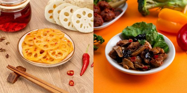 Combinación recomendada 1: Raíz de loto picante y anillos de gluten tostados rojos