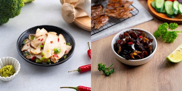 Combinación recomendada 2: Hongos ostra con sabor a mostaza y hongos de Sichuan con granos de pimienta