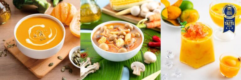 Sopa de Calabaza Energizante: ¡La sopa perfecta para la ocasión! Esta rica y dulce sopa de calabaza, combinada con el aroma de la crema fresca, es reconfortante y saciante, perfecta para las reuniones de Halloween en otoño e invierno.
