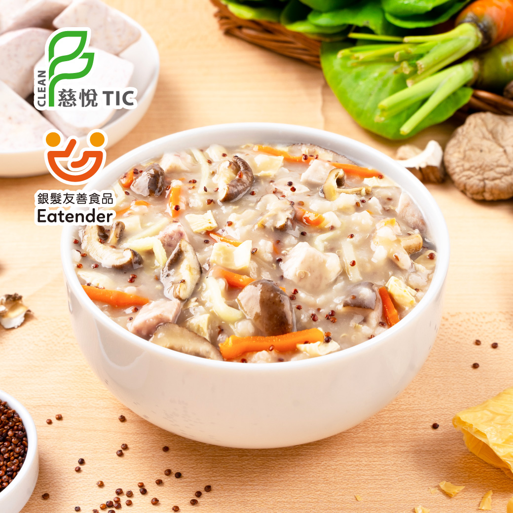 嚴選無汙染米及秘魯紅藜麥,加入芋頭塊精心熬煮,散發濃郁迷人芋香,香菇片提升香氣豐富度,以芹菜、香油提味,古早味暖胃好粥。